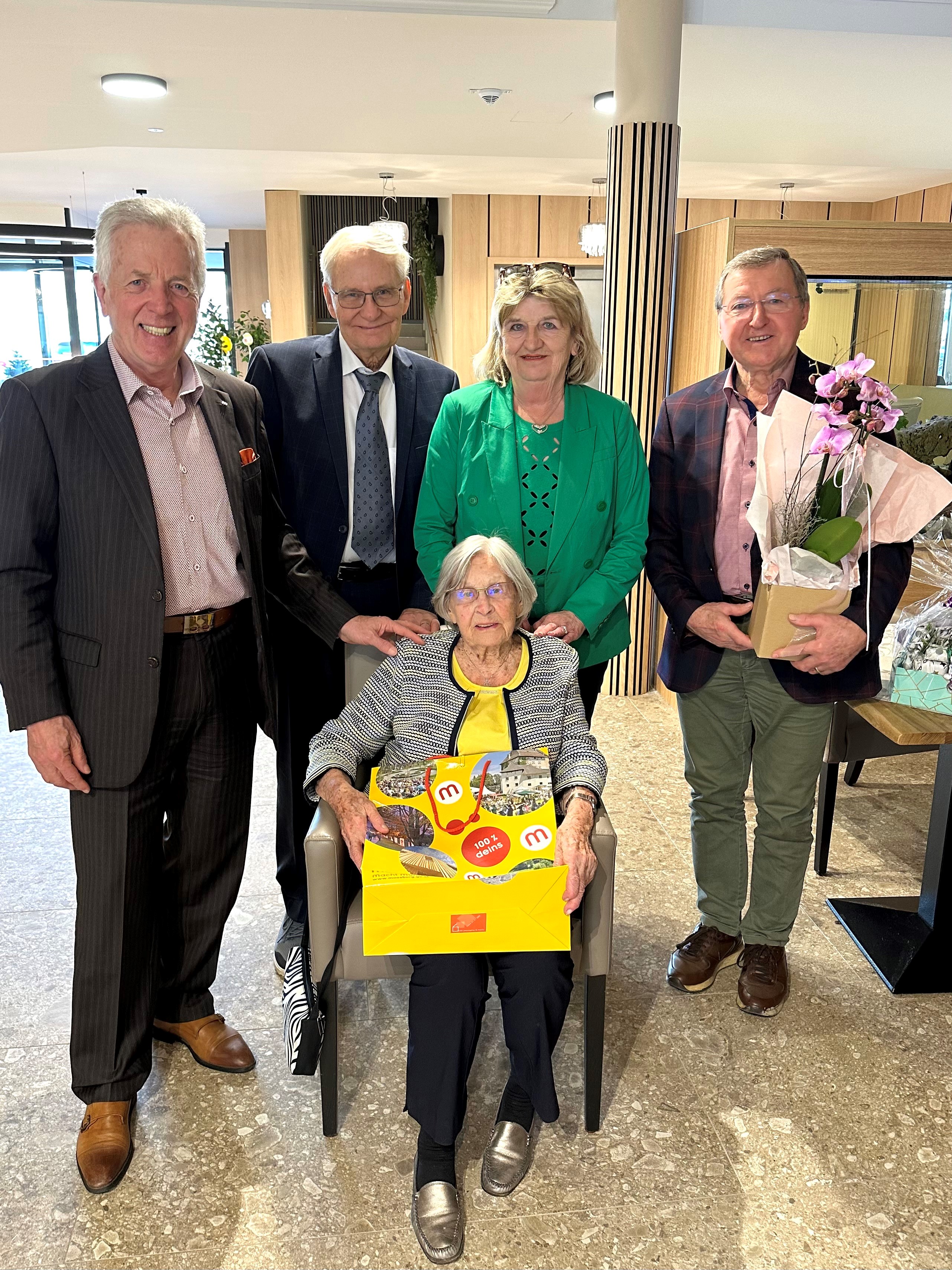 Die Bewohnerin der Mavida Residenz in Moosburg erfreut sich guter Gesundheit und ist in ihrem neuen Zuhause sehr glücklich. „Wir wünschen Frau Hannemann alles Gute und natürlich viel Gesundheit und freuen uns sehr, dass es ihr in Moosburg so gut gefällt“, sagten Bürgermeister Herbert Gaggl und GR Eckart Schwarzfurtner,