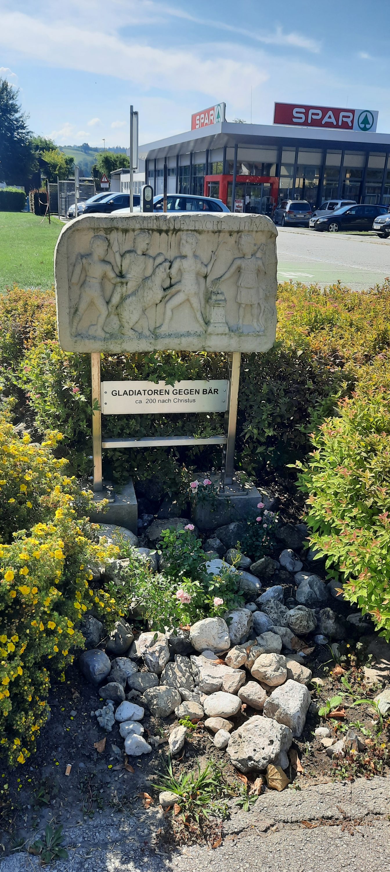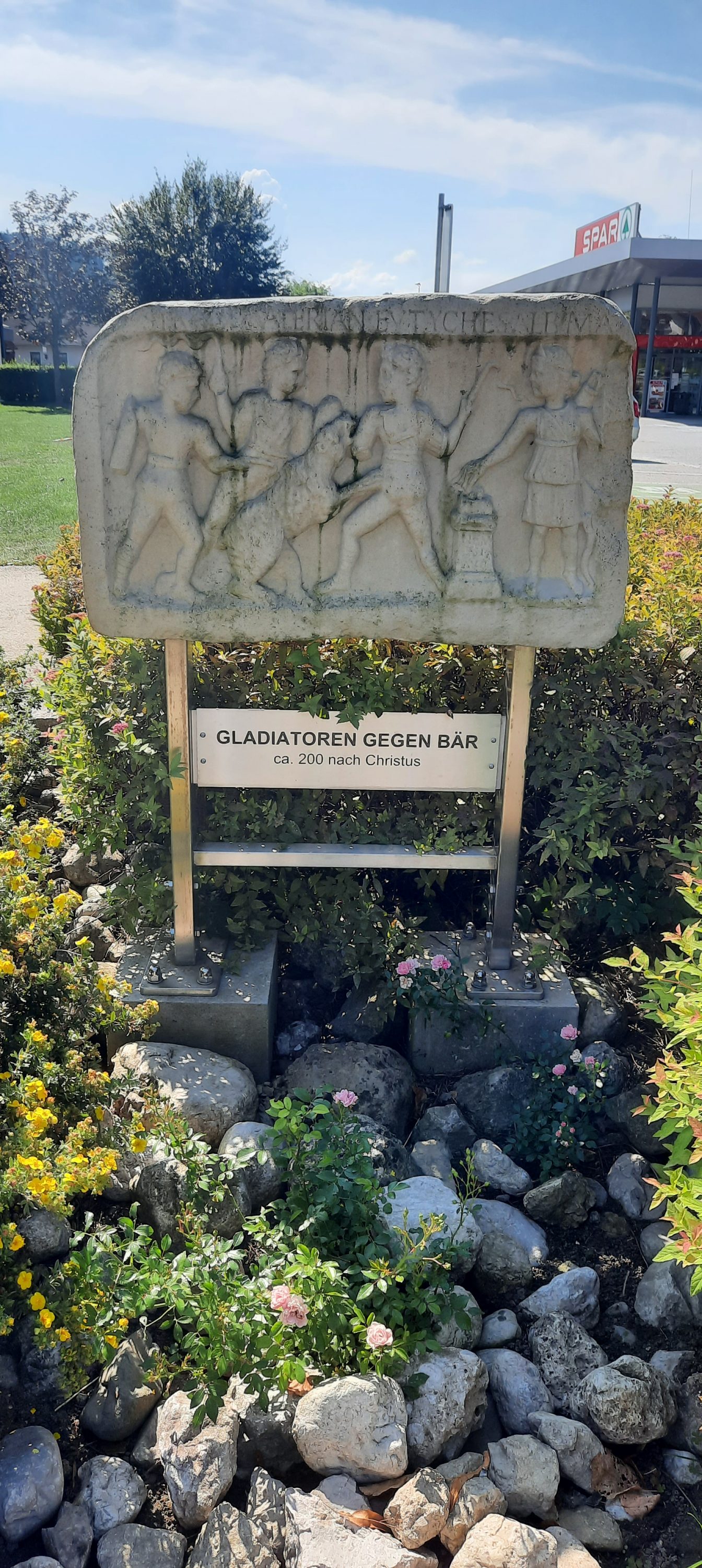 Weiherelief: Gladiatoren kämpfen gegen einen Bären
